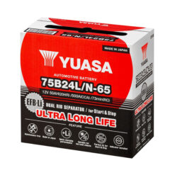 La batería de YUASA N-65 75B24L de 50ah 500cca de la la línea I- STOP, es una batería libre de mantención de excelente calidad en el tamaño ideal para vehículos como; Mazda, Lexus, Toyota para la última generación de vehículos con sistema de ahorro de combustible y partida inteligente. Gracias a la tecnología EFB+LITIO.