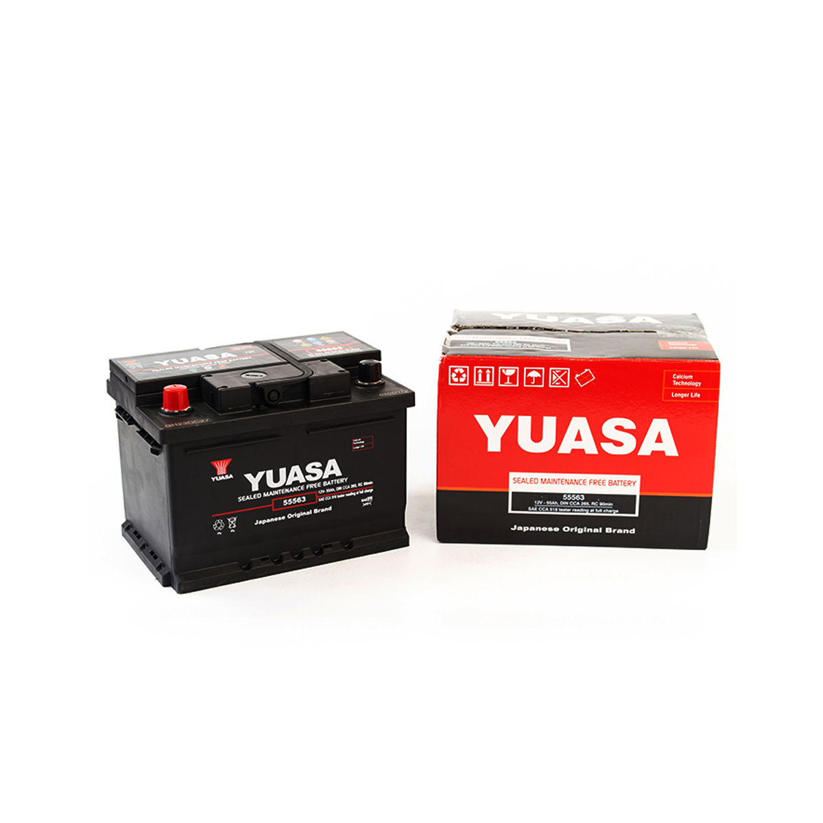 La batería de auto YUASA 55563 SMF de 55AH,CCA 518 es una batería libre de mantención de excelente calidad en el tamaño ideal para vehículos como el Chevrolet Aveo, Chevrolet Optra y muchos mas. La batería lleva avanzada calidad y tecnología japonesa de larga duración apta para el camino que se presente.