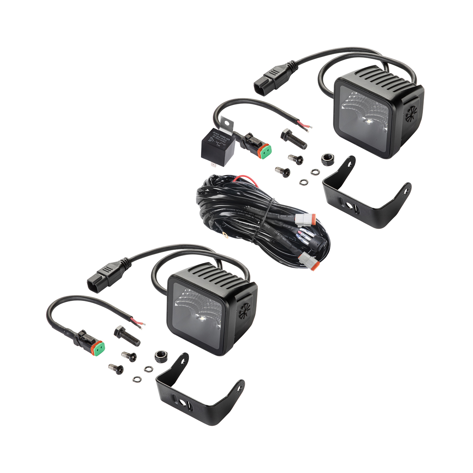 Los faros Black Magic Cube cumplen con la máxima clase de resistencia al polvo y al agua. Vienen en juegos de 2 unidades e incluyen el kit de cables con conector DT, interruptor, enchufe y relé, lo que facilita su instalación.